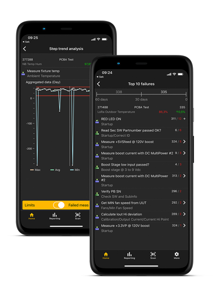 Use the built-in barcode scanner feature to quickly access test and repair history for any unit. In the factory, or out in the field.